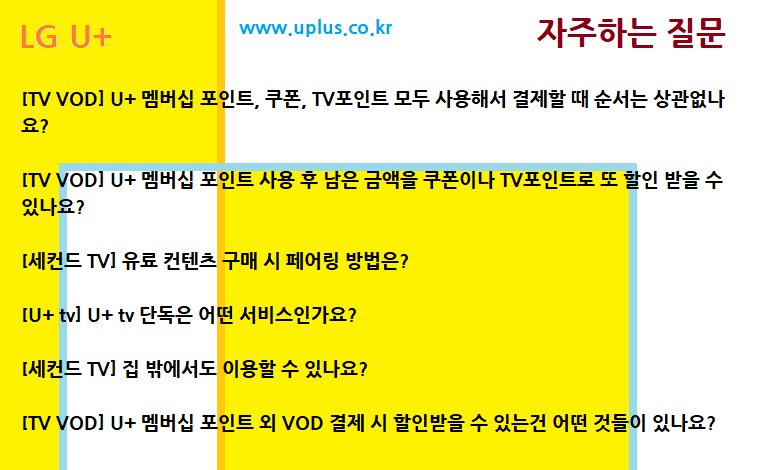 [엘지 유플러스 FAQ] [TV VOD] U+ 멤버십 포인트, 쿠폰, TV포인트 모두 사용해서 결제할 때 순서는 상관없나요?